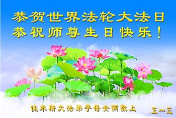 黑龙江佳木斯大法弟子母女二人祝贺五一三世界法轮大法日!恭祝师父生日快乐!