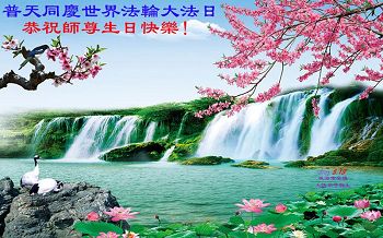 值此法轮大法洪传世界二十四周年纪念日来临之际,我代表全家六位大法弟子恭祝慈悲伟大的师父生日快乐!普天同庆世界法轮大法日!感谢师父的慈悲救度!我们一定要跟上师父正法進程,学好法,多救人。广东省汕头市大法弟子一家人叩拜! 广东省珠海市一学法小组大法弟子恭祝师父生日快乐!庆祝世界法轮大法日!