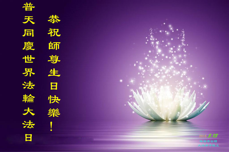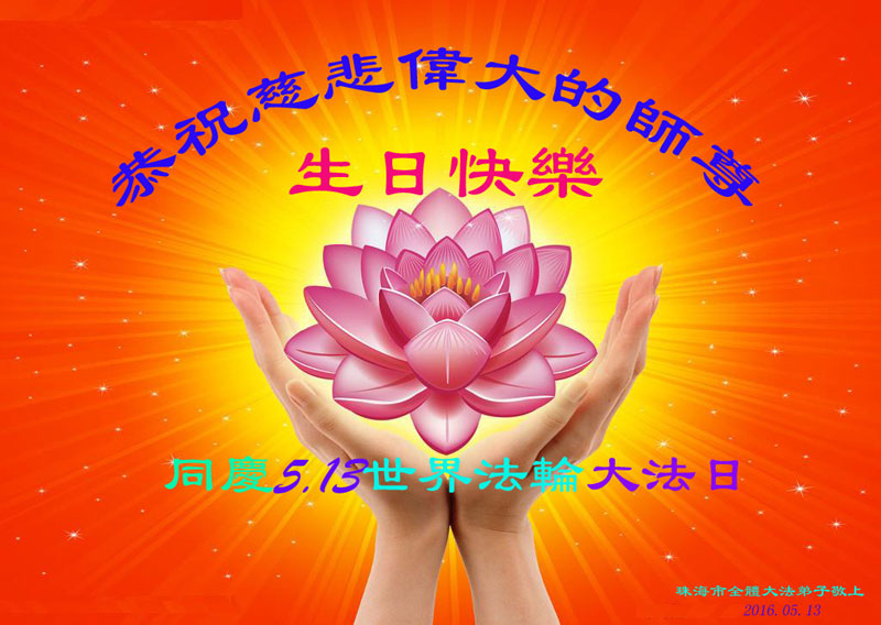 广东珠海大法弟子恭贺第十七届世界法轮大法日!恭祝师尊生日快乐!