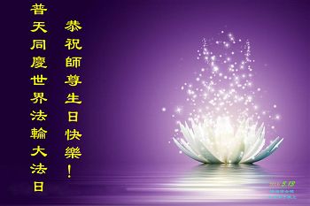 作为大法弟子,我一直不精進,对不起这么好的大法,对不起师尊。感谢师尊没有放弃我,在师尊的慈悲指引下,我从新开始了抄书、背书、炼功,但是讲真相这方面一直没做好,请师尊加持我做好师尊要求的三件事,我要努力做一名合格的大法弟子。 谢谢师尊!谢谢同修! 一名从内地来深圳工作的大法弟子 广东大法弟子恭祝慈悲伟大的师父生日快乐!