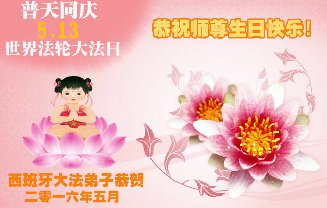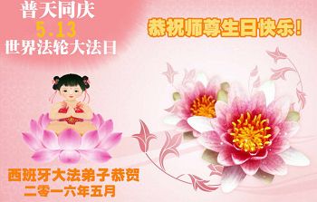 【明慧网二零一六年五月十三日】 西班牙大法弟子恭祝慈悲伟大的师尊生日快乐!
