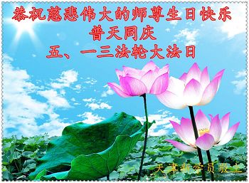 在“世界法轮大法日”到来之际,我怀着无限敬仰的心情,向我最最敬仰的师尊道一声:祝师尊生日快乐!在师尊正法有限的时间里,我要紧跟师尊正法進程,努力做好三件事,救度更多的众生。 廊坊新学员 河北廊坊大法弟子恭祝法轮大法日!