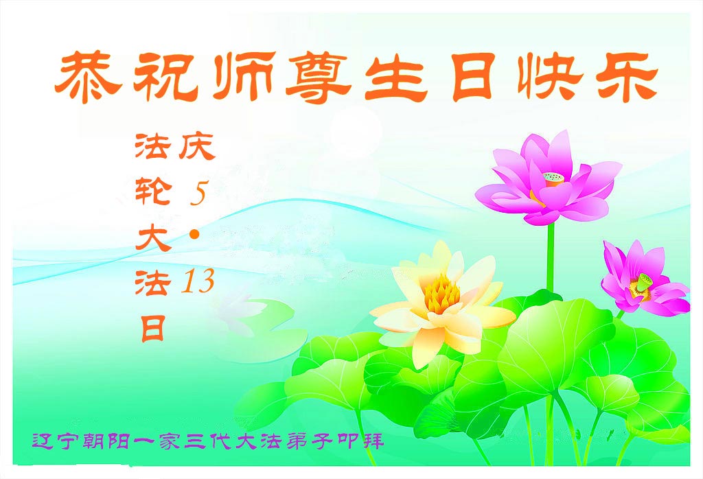 恭祝师父生日快乐!恭贺世界法轮大法日! 辽宁朝阳大法弟子一家恭贺法轮大法日