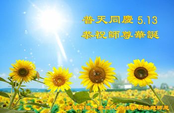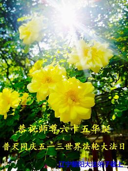 同贺五一三世界法轮大法日 师恩浩荡。千言万语,万语千言无法表达弟子对慈悲伟大师尊的感恩。弟子唯有精進,精進,再精進,救人,救人,多救人。放下自我,圆容整体,抓紧时间做好三件事,跟师父回家。 2016年5月10日 辽宁朝阳大法弟子恭祝师尊华诞暨世界法轮大法日!