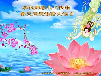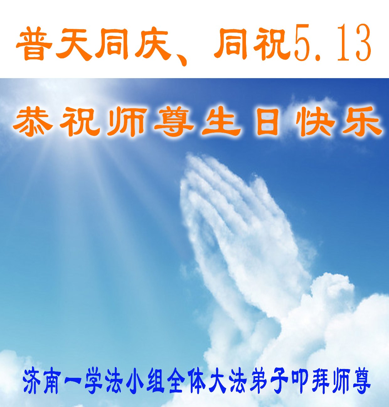普天同庆、同贺慈悲伟大的师尊生日快乐!普天同庆、同贺第十七个世界法轮大法日的到来!是师尊带着永世不变的大法拯救了整个宇宙,是师尊不嫌弃我们的愚钝与满身的肮脏,洗净了我们并一步一步的引领着我们前行,是师尊的大法让我们看到了人类光明的希望,(师尊我冒昧的称自己是您的弟子,因我感觉自己还没有达到师尊大法的要求)弟子无法用现在的语言来表达我内心的感激、感恩的心情。只有在正法结束前,按照大法做,修去自身一切不符合大法的东西,做好三件事,愿能成为师尊承认的大法弟子。 一资料点的大法弟子 二零一六年五月十日 山东省济南市章丘市一学法小组大法弟子庆祝世界法轮大法日!并祝师尊生日快乐!