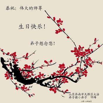 恭祝慈悲伟大的师尊生日快乐! 弟子谨记师尊的教诲,多学法,多救人,做好三件事,随师返家园! 济南一学法小组叩拜师尊 二零一六年五月 山东省济南一学法小组大法弟子祝慈悲伟大尊敬的师父生日快乐!
