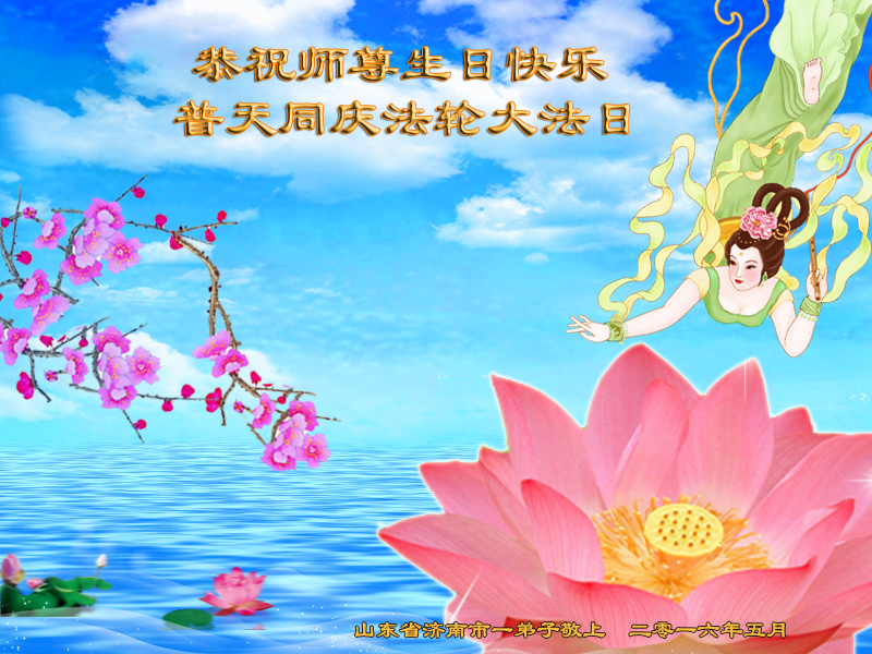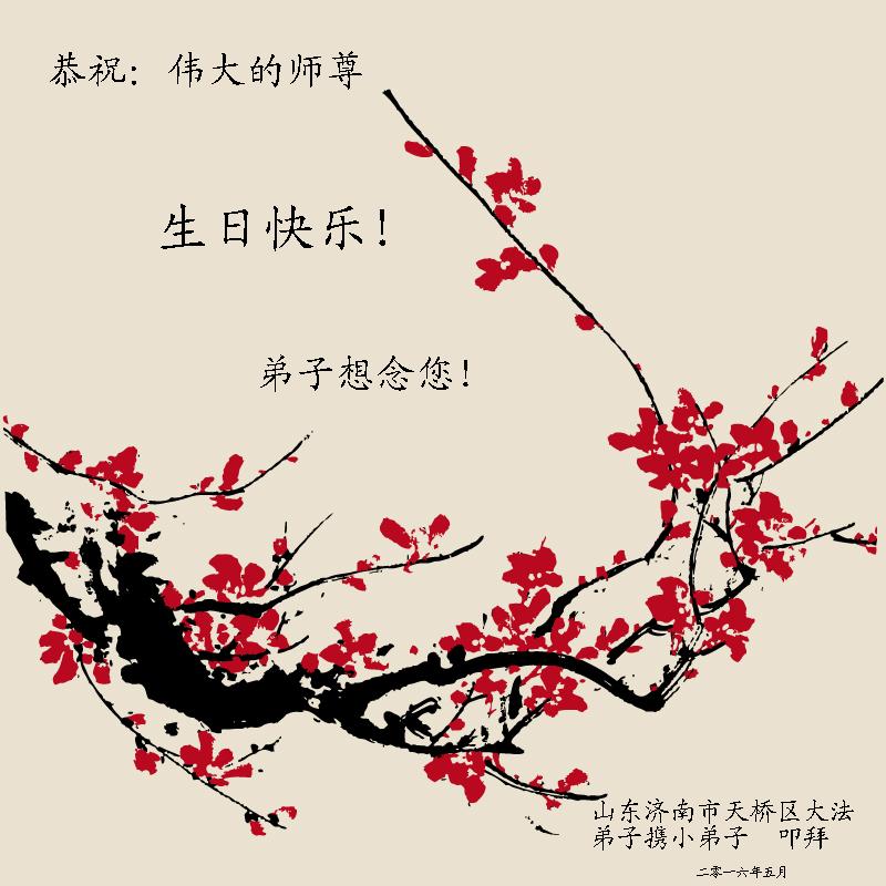 【明慧网二零一六年五月十三日】 山东省济南大法弟子恭祝师尊生日快乐!
