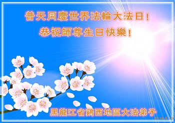 黑龙江鸡西地区虎林大法弟子恭祝师尊华诞暨世界法轮大法日!