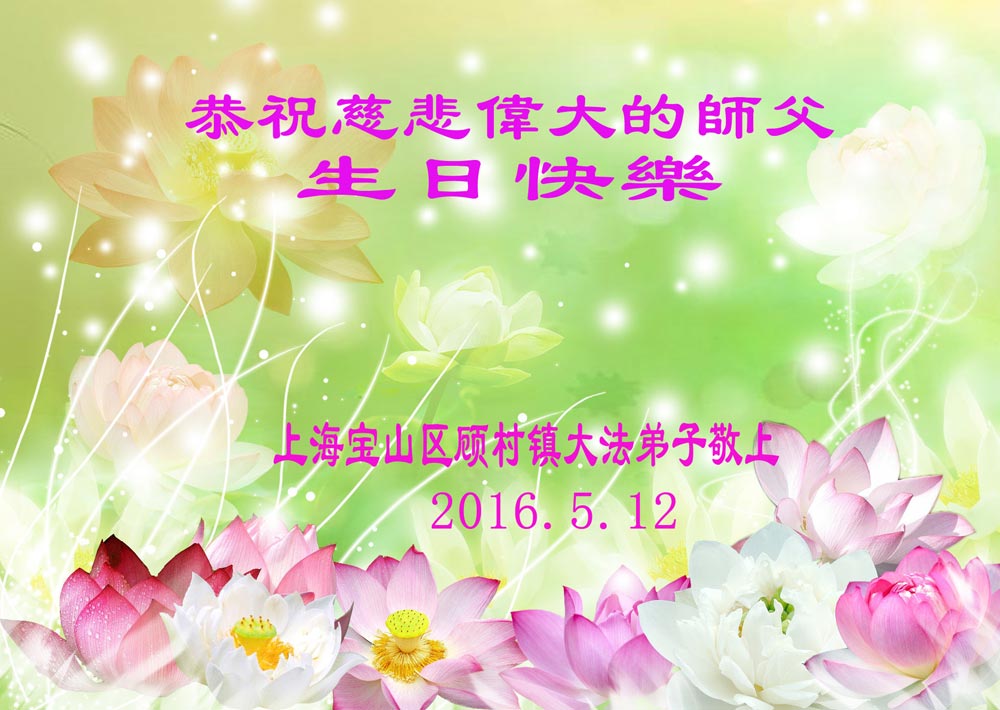 【明慧网二零一六年五月十三日】 上海市一集体真相点全体大法弟子恭祝师父生日快乐!