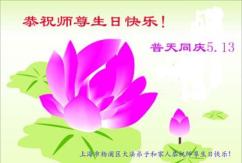 大法弟子福音祝师父生日快乐!祝师父和所有大法弟子节日快乐! 上海市杨浦区大法弟子恭祝师尊生日快乐!