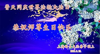 师父的慈悲点化,让弟子更加明白提高心性的重要和关键。以前弟子一直觉的修炼是一件非常苦的事情,但现在弟子常常觉的沉浸在修炼中的自己是最快乐和幸福的,能成为大法弟子,是弟子生命中最最幸运的事情,因此我要更加努力,做好三件事,配合好同修,更上正法脚步,能够跟随师父回家!再次谢谢师父的慈悲苦度,师父,您辛苦了!弟子合十! 上海大法弟子 上海大法弟子恭祝慈悲伟大的师尊生日快乐!