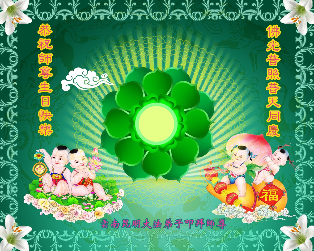请师尊放心,我们坚信大法,不畏迫害,一定做好三件事,跟随师尊救度众生。 昆明市大法弟子恭祝师尊生日快乐!普天同庆世界法轮大法日!