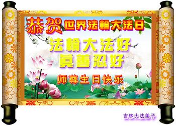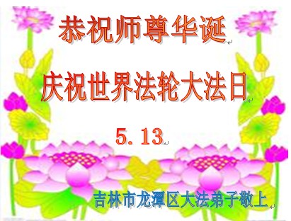 吉林省吉林市九站一学法小组大法弟子恭祝师尊生日快乐! 恭贺世界法轮大法日! 在未来的日子里,弟子们将会更好的配合,做好师尊要求的三件事。叩谢师尊的慈悲苦度! 吉林省吉林市一母女大法弟子恭祝慈悲伟大的师尊六十五华诞快乐!