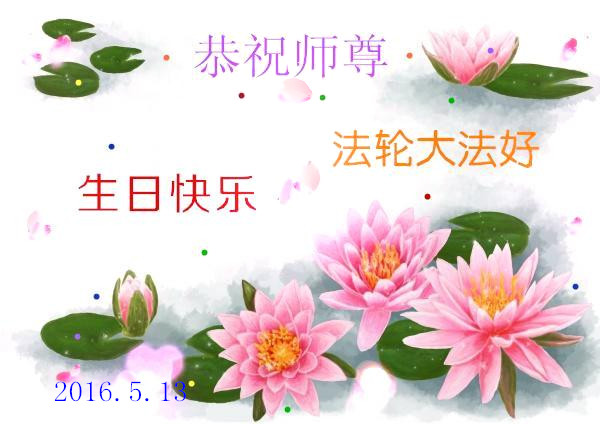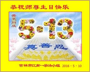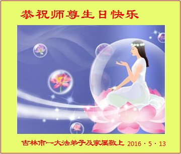 【明慧网二零一六年五月十三日】 吉林市大法弟子恭祝师尊生日快乐!