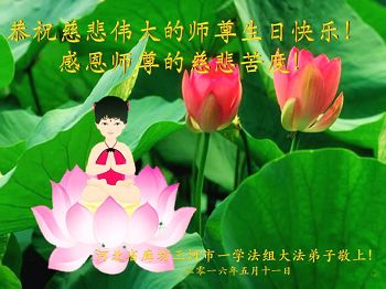 河北省廊坊三河市一学法组大法弟子恭祝慈悲伟大的师尊生日快乐!