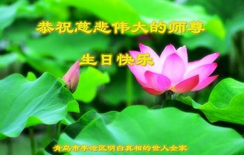 普天同庆法轮大法日!值此佳节,弟子和支持大法的家人恭祝伟大的师父生日快乐!并对师父献上一份最真诚的感恩!感谢师父救度!谢谢师父!师父您辛苦了! 山东省青岛高新区明真相的大法弟子家属恭祝伟大的师父生日快乐!