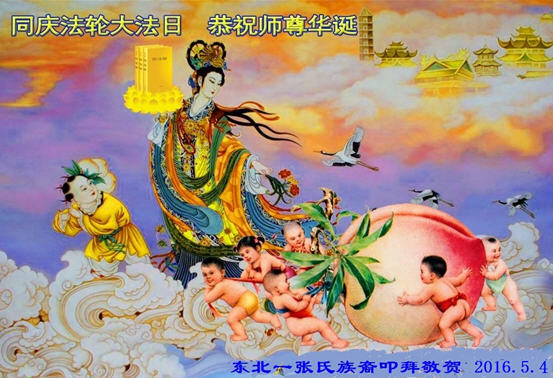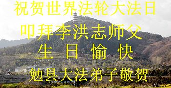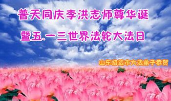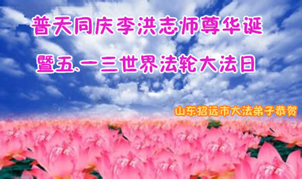【明慧网二零一六年五月十三日】 山东省烟台市招远市大法弟子恭贺、恭祝师尊生日快乐!恭庆世界法轮大法日!