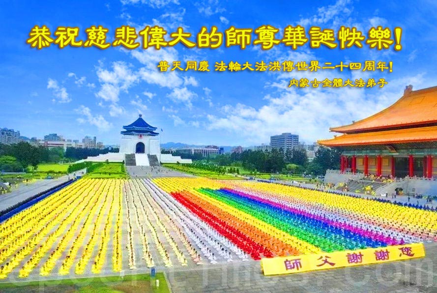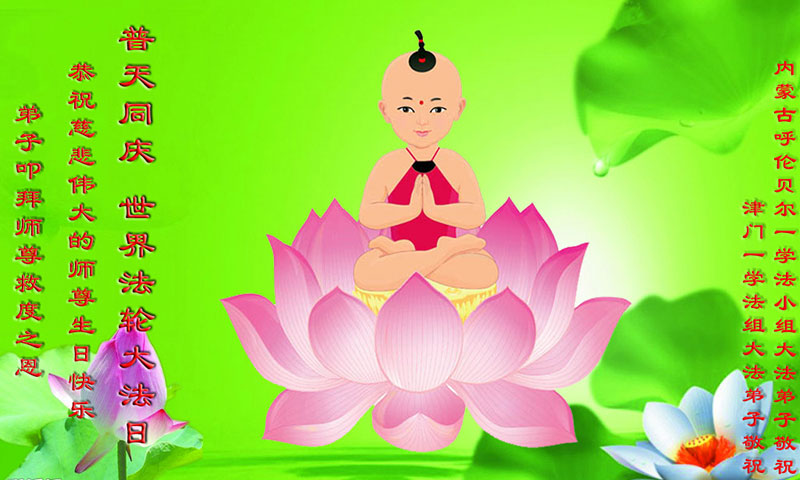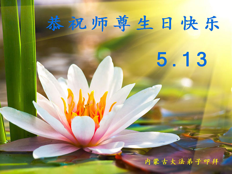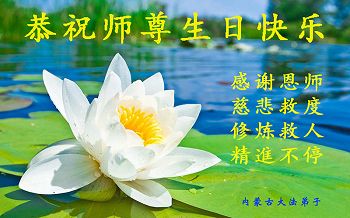 慈悲伟大的师尊:您好! 我们是内蒙古教育系统的大法弟子,我们时刻感受着师尊的慈悲呵护与加持,是您牵着弟子的手,让我们稳稳的走在回归的路上;是您引领着我们闯过一个又一个难关。 芸芸众生中,能成为正法时期与正法同在的大法徒,我们是何等的荣幸! 师恩浩荡,我们无以回报,唯有快快放下人心,多多救人,才对得起您的慈悲救度,才无愧于大法徒的称号! 我们决心整体配合、整体提高,走好助师正法的最一段路,兑现史前誓约。 弟子们给师尊叩首跪拜!合十 内蒙古全体大法弟子恭祝慈悲伟大的师尊生日快乐!祝贺世界法轮大法日!