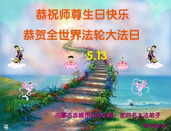 世界法轮大法日! 我们全家恭祝师尊生日快乐!我们一定实修大法做好三件事,请师父放心。 内蒙古自治区赤峰大法弟子祝师父生日快乐!普天同