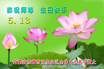 内蒙古自治区赤峰全体大法弟子恭祝慈悲伟大的师尊生日快乐!祝贺世界法轮大法日!