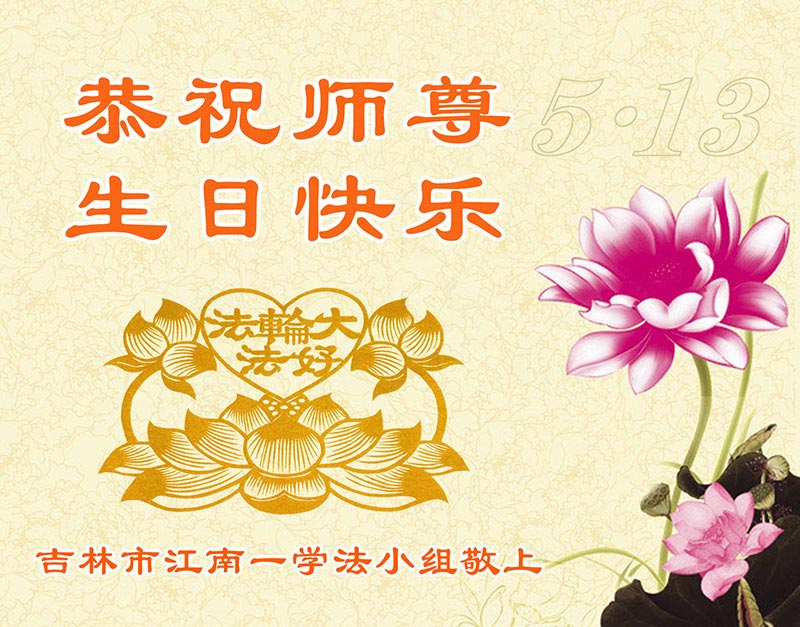 感谢师尊慈悲救度。叩谢师恩! 吉林省吉林市江南一学法小组大法弟子恭祝师尊生日快乐暨恭贺法轮大法日!