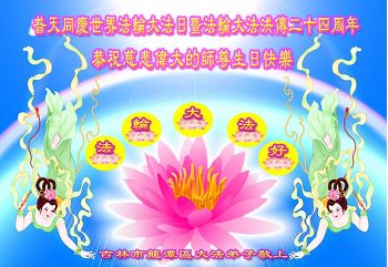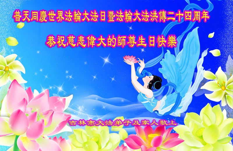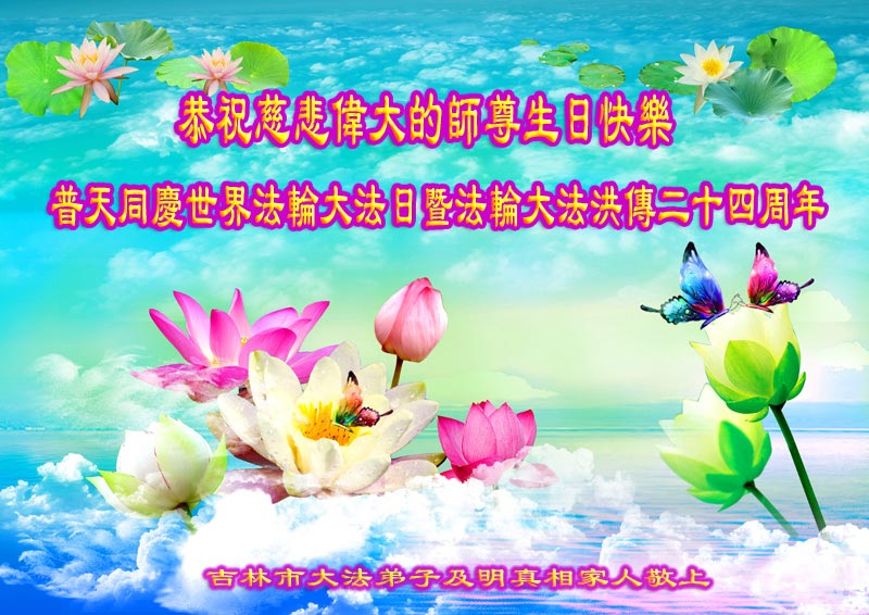 吉林市一家大法弟子恭贺法轮大法日!恭祝师父生日快乐!