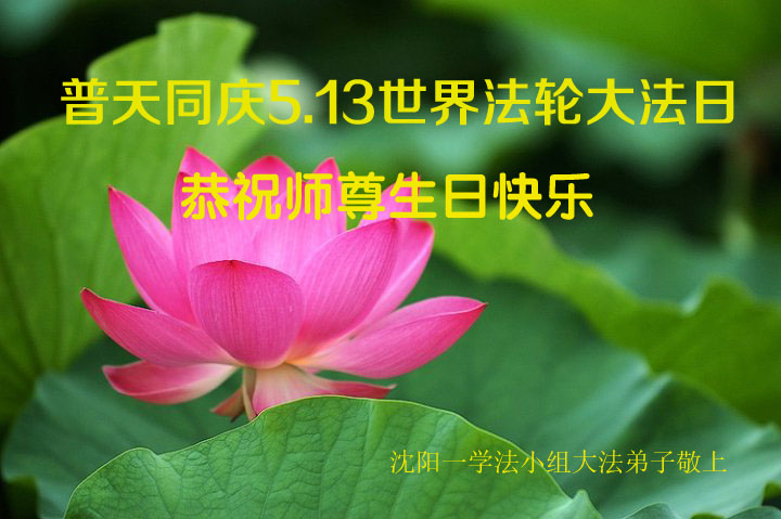普天同庆“5.13”法轮大法日! 感恩师父救度之恩!修好自己,救度众生,做好三件事,走师父安排修炼的路,跟师父回家! 合十 沈阳市一学法小组全体大法弟子敬上 二零一六年五月九日 辽宁沈阳大法弟子敬祝师尊生日快乐!