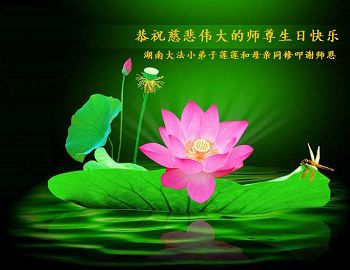 湖南大法小弟子莲莲和母亲同修叩谢师尊!恭祝慈悲伟大的师尊生日快乐!