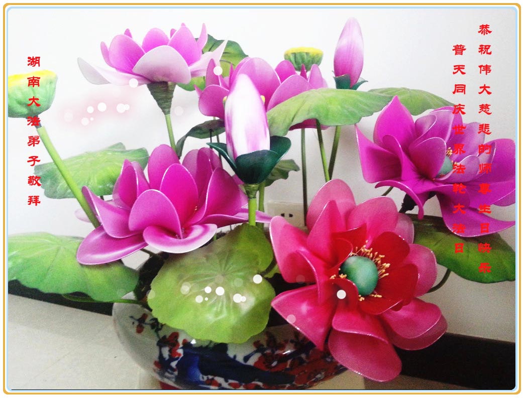 恭祝师父生日快乐! 湖南桃源大法弟子敬上 湖南娄底市老年大法弟子恭贺法轮大法日!恭祝师父生日快乐!
