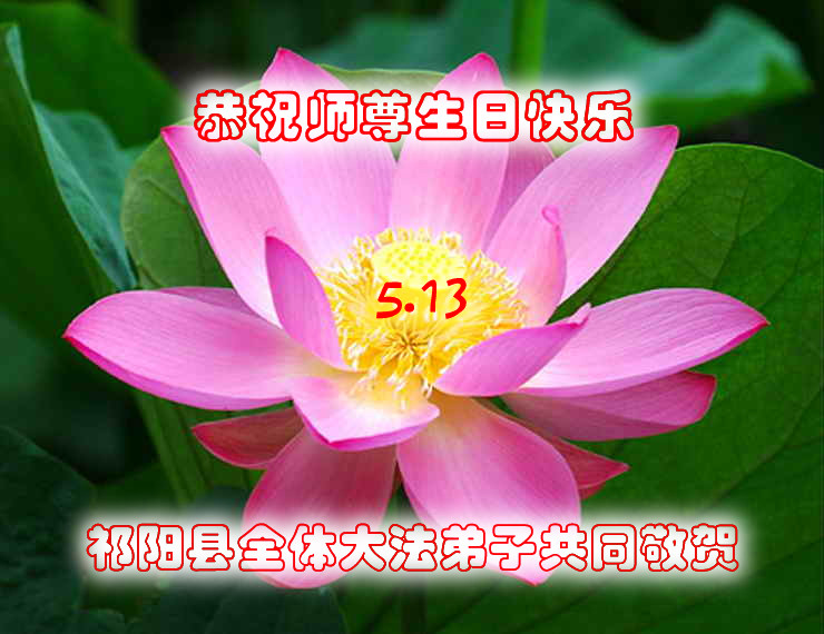 【明慧网二零一六年五月十三日】 湖南省永州市祁阳县全体大法弟子恭祝师尊生日快乐!
