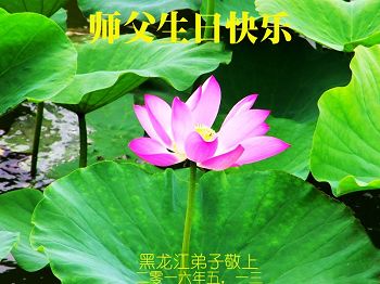 师父:辛苦了!请您放心,我们一定努力做好三件事,走师父安排的路,争分夺秒救度更多的众生,让师父多一份欣慰,跟师父回家。大法弟子叩谢恩师! 黑龙江大法弟子恭祝师父生日快乐!