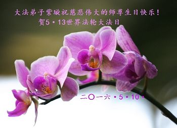 一、恭贺师尊生日快乐! 师尊华诞普天庆, 弟子叩拜贺师尊! 生日快乐多欢欣, 弟子感恩更精進! 二、普天同庆五一三 百花齐放艳阳天, 普天同庆五一三! 颂歌嘹亮彻寰宇, 师恩浩荡惠无边! 大法洪传二十四年, 师驾慈航冲万难。 亿万圣徒紧随师, 兑现誓约迎师还! 师父啊!弟子给您跪拜磕头啦!弟子得法沐浴师恩二十年啦!弟子和全家人时时刻刻都在师父的佛光普照下,那种无边的幸福感无以言表!师父啊,弟子想您盼您哪!弟子们决心听师父的话,三件事精進再精進!多救众生,圆满随师回家! 弟子敬上 二零一六年五月十日 河南省平顶山市大法弟子恭祝慈悲伟大的师尊生日快乐暨世界法轮大法日!