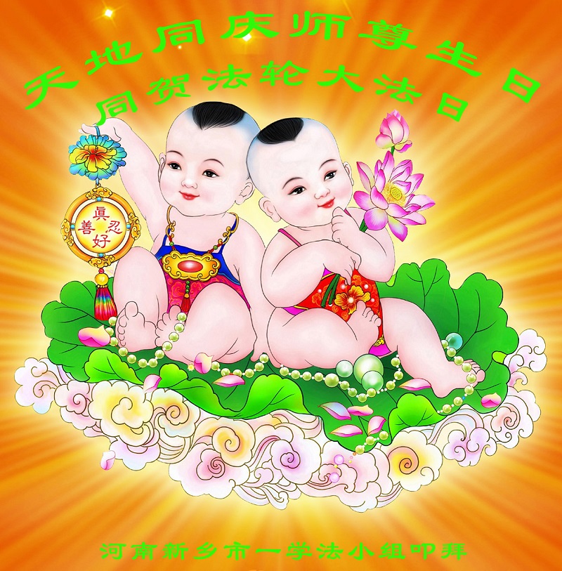同时,祝贺世界法轮大法日!做好三件事,跟师父圆满回家。 辽宁阜新一学法小组大法弟子恭祝师尊生日快乐!恭贺世界法轮大法日!