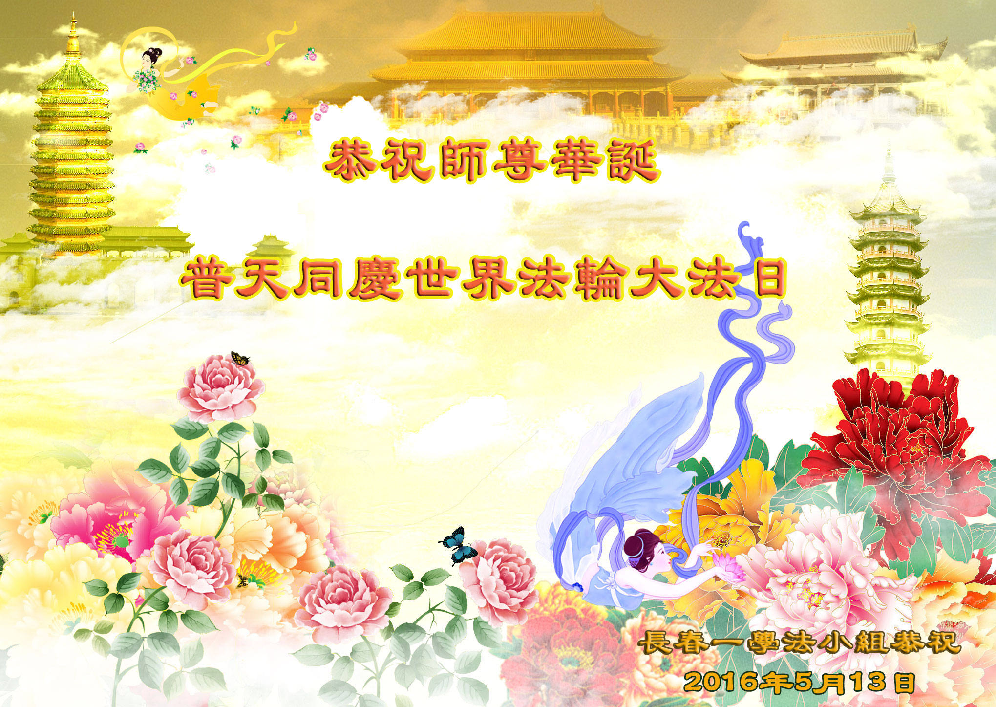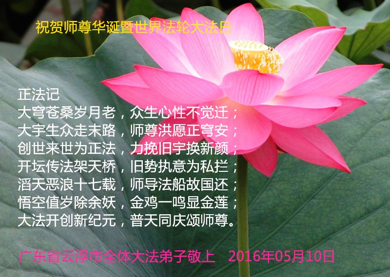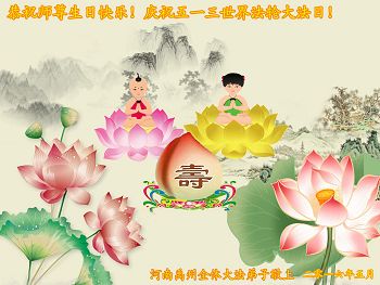恭祝师尊生日快乐! 普天同庆5.13世界法轮大法日! 广东省云浮市大法弟子学法小组敬上 天津武清大法弟子恭祝师尊圣诞快乐!