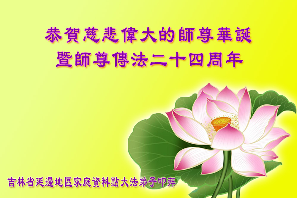 恭贺慈悲伟大的师尊华诞暨师尊传法二十四周年 吉林省延边地区家庭数据点大法弟子叩拜 吉林省长春青年大法弟子恭祝慈悲伟大的师尊生日快乐!