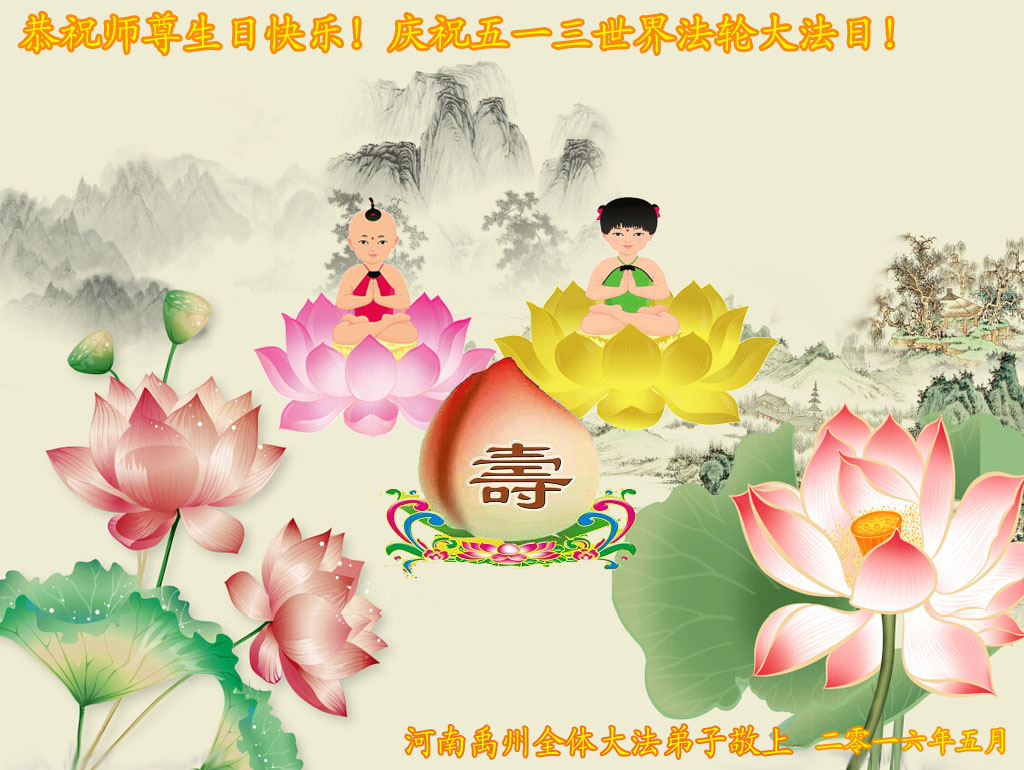 恭祝慈悲伟大的师尊生日快乐! 普天同庆5.13世界法轮大法日! 黑龙江佳木斯市铁路大法弟子跪拜 河南省许昌市禹州市全体大法弟子恭祝伟大师尊生日快乐!庆祝五一三世界法轮大法日!