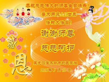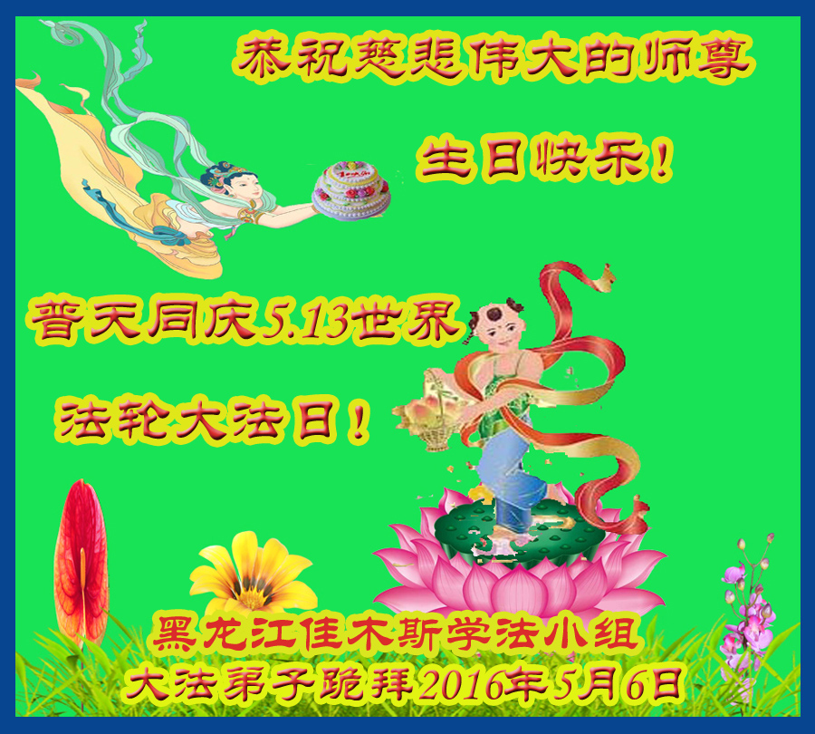黑龙江佳木斯市大法弟子一小组恭祝慈悲伟大的师尊生日快乐!