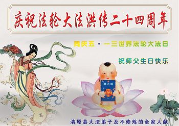 辽宁省抚顺市清原县大法弟子及不修炼的全家人恭祝师尊生日快乐暨世界法轮大法日!