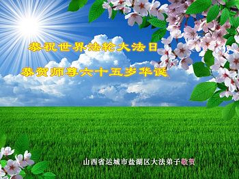 山西省运城市盐湖区大法弟子恭祝世界法轮大法日暨师尊华诞!恭祝第十七届“世界法轮大法日”!