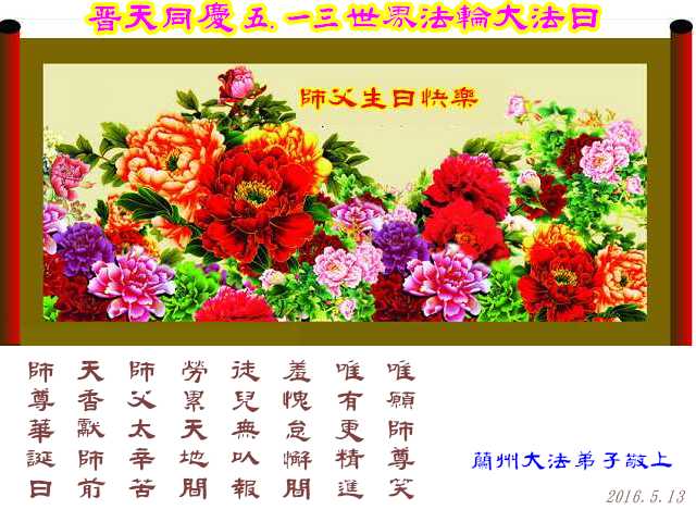 甘肃省兰州大法弟子祝师父生日快乐!普天同庆5.13世界大法日!
