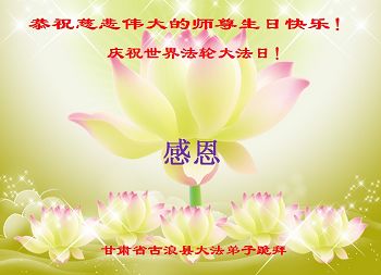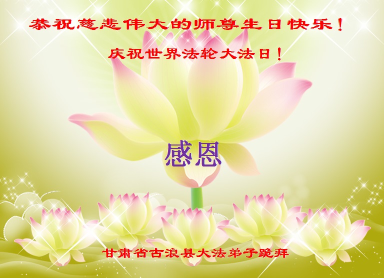 甘肃省武威市古浪县大法弟子恭祝慈悲伟大的师尊生日快乐!庆祝世界法轮大法日!