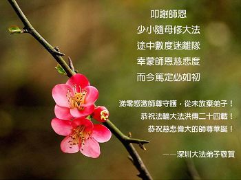广东省深圳大法弟子恭祝大法洪传二十四周年!恭祝师尊华诞!