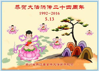 四川省达州市开江县教育系统全体大法弟子祝贺法轮大法洪传二十四周年!普天同庆世界法轮大法日!
