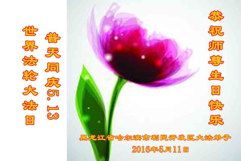 普天同庆颂师尊, 穹宇众生沐洪恩, 牢记誓约更精進, 不负使命多救人。 黑龙江省哈尔滨市呼兰区大法弟子普天同庆5.13世界法轮大法日!恭祝师尊生日快乐!