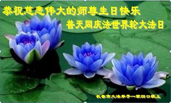 我们全家都很感激师尊的恩德。 吉林省长春孪生姐妹大法弟子恭祝师尊生日快乐!同祝世界法轮大法日!谢谢师尊的慈悲苦度!