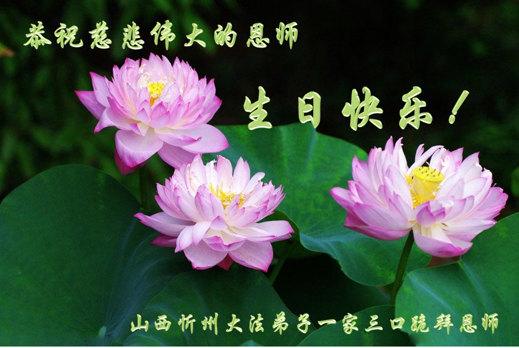 山西忻州大法弟子一家三口恭贺法轮大法日!恭祝恩师生日快乐!