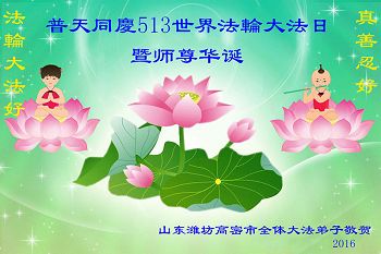 山东潍坊的一个大法学员恭贺师尊华诞!
