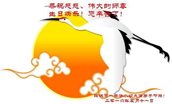 尊敬的师尊好!弟子会精進、精進、再精進,让师父放心,愿师尊欣慰! 重庆江北区父女俩大法弟子和渝北区人民敬祝师尊生日快乐!