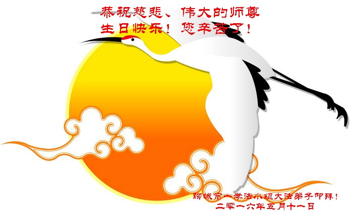 山东临朐一大法弟子代表父母、丈夫、儿子、妹妹和弟弟的家人向慈悲伟大的师父送上最诚挚的祝愿,祝师尊生日快乐!节日快乐!