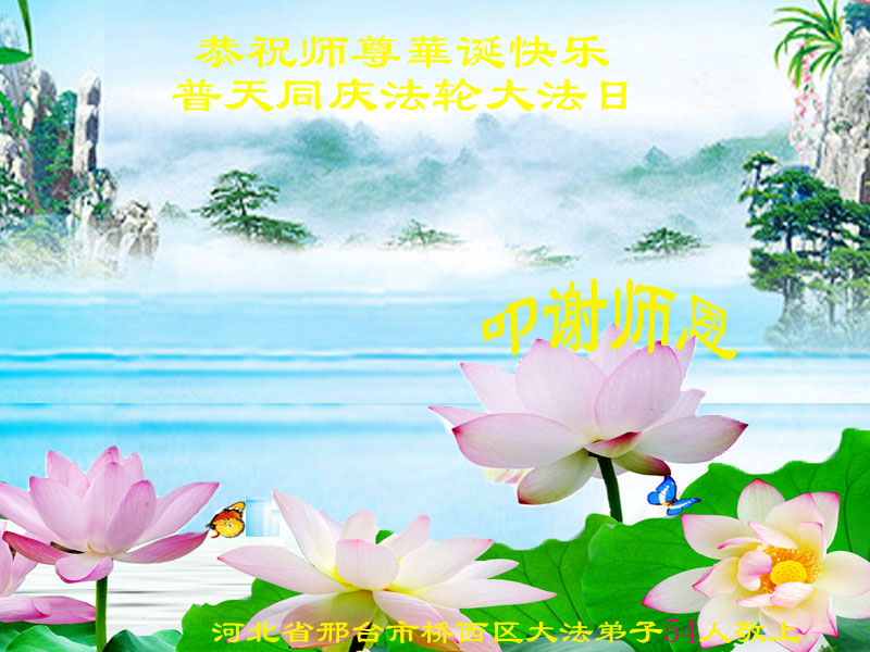 河北邢台大法弟子恭祝师父华诞快乐!普天同庆世界法轮大法日!